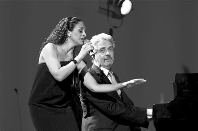 诺雅(左)演唱《俏丽人生》,指挥尼古拉·皮奥尼瓦伴奏。本报记者吴平摄